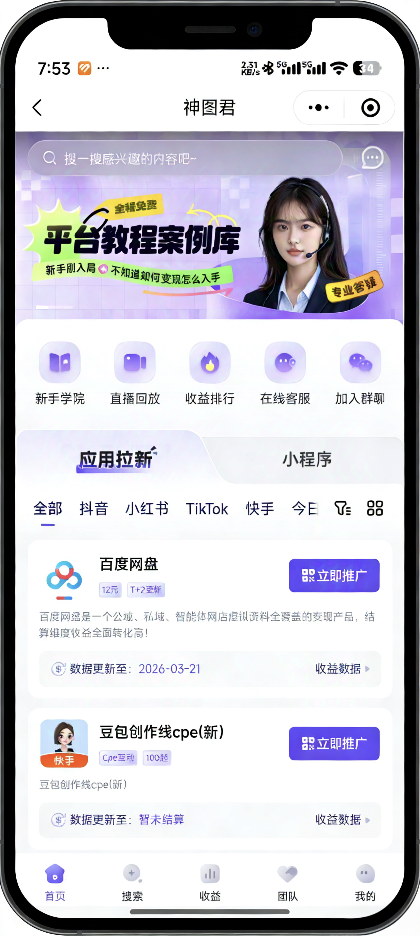 通过强大的平台集成能力,实现海内外流量渠道无缝连接,打通数据壁垒,构建高效协同的推广环境。同时,依托自动化任务分发,显著提升拉新效率,降低人为操作失误,简化日常推广管理。这一系列智能化解决方案,不仅优化了推广体验,更为创作者的流量变现提供了坚实支撑。